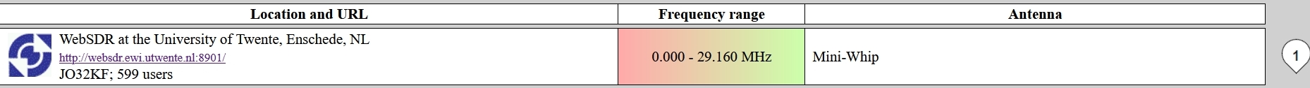 WEB SD-Radio an der Universität in Twente Holland. Wer schnell mal via Internet von 10KHz bis 30Mhz sein eigenes Signal hören möchte oder prüfen will, oder ob ein Band geöffnet ist.